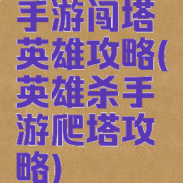 手游闯塔英雄攻略(英雄杀手游爬塔攻略)