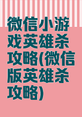 微信小游戏英雄杀攻略(微信版英雄杀攻略)