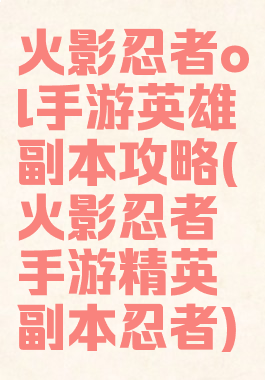 火影忍者ol手游英雄副本攻略(火影忍者手游精英副本忍者)