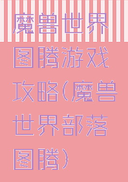魔兽世界图腾游戏攻略(魔兽世界部落图腾)