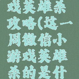 微信小游戏英雄杀攻略(这一周微信小游戏英雄杀的是什么英雄)