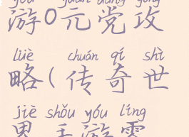 传奇世界手游0元党攻略(传奇世界手游零元党)