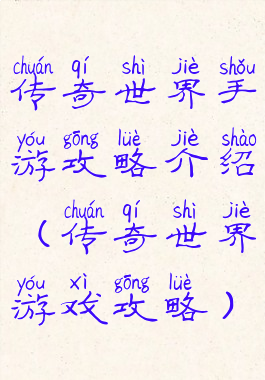 传奇世界手游攻略介绍(传奇世界游戏攻略)
