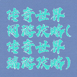 传奇世界网游攻略(传奇世界端游攻略)