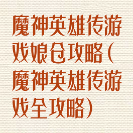 魔神英雄传游戏娘仓攻略(魔神英雄传游戏全攻略)