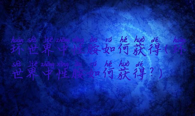 环世界中性胺如何获得(环世界中性胺如何获得?)
