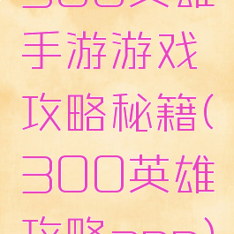 300英雄手游游戏攻略秘籍(300英雄攻略app)