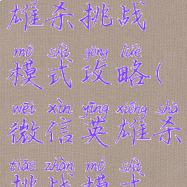 微信游戏英雄杀挑战模式攻略(微信英雄杀挑战模式攻略最新)