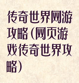 传奇世界网游攻略(网页游戏传奇世界攻略)