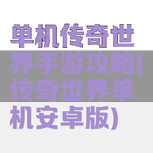 单机传奇世界手游攻略(传奇世界单机安卓版)