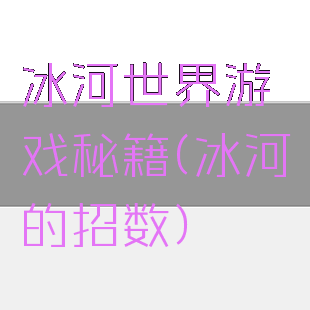 所在位置: 首页 > 专题 > 冰河世界游戏秘籍(冰河的招数)