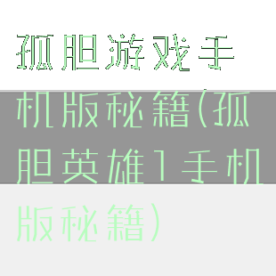 孤胆游戏手机版秘籍(孤胆英雄1手机版秘籍)
