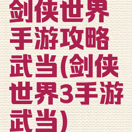 剑侠世界手游攻略武当(剑侠世界3手游武当)