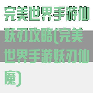 完美世界手游仙妖刃攻略(完美世界手游妖刃仙魔)