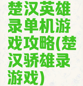 楚汉英雄录单机游戏攻略(楚汉骄雄录游戏)