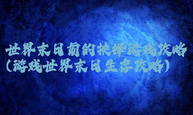 世界末日前的抉择游戏攻略(游戏世界末日生存攻略)