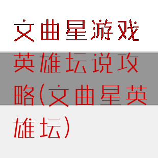 文曲星游戏英雄坛说攻略(文曲星英雄坛)