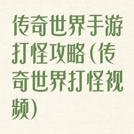 传奇世界手游打怪攻略(传奇世界打怪视频)