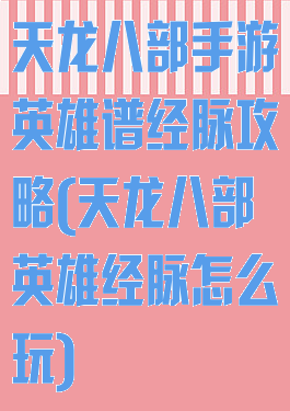 天龙八部手游英雄谱经脉攻略(天龙八部英雄经脉怎么玩)