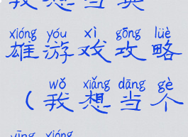 所在位置: 首页 > 专题 > 我想当英雄游戏攻略(我想当个英雄)
