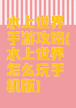 水上世界手游攻略(水上世界怎么玩手机版)