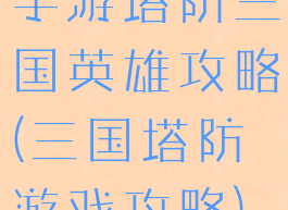 手游塔防三国英雄攻略(三国塔防游戏攻略)