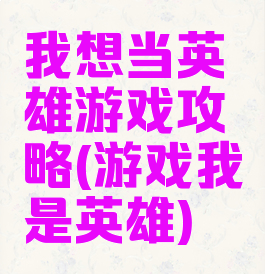 我想当英雄游戏攻略(游戏我是英雄)
