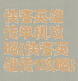 侠客英雄传单机攻略(侠客英雄传1攻略)