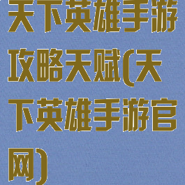 天下英雄手游攻略天赋(天下英雄手游官网)