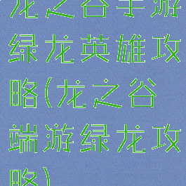 龙之谷手游绿龙英雄攻略(龙之谷端游绿龙攻略)