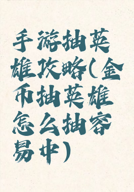 手游抽英雄攻略(金币抽英雄怎么抽容易中)