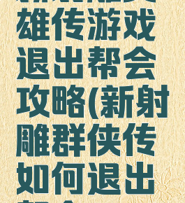 新射雕英雄传游戏退出帮会攻略(新射雕群侠传如何退出帮会)