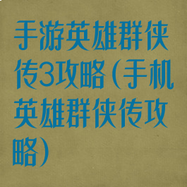手游英雄群侠传3攻略(手机英雄群侠传攻略)