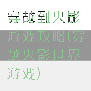 穿越到火影游戏攻略(穿越火影世界游戏)