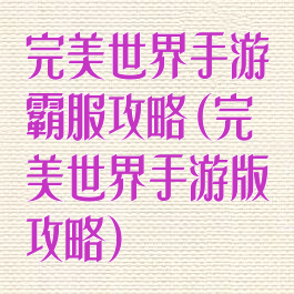 完美世界手游霸服攻略(完美世界手游版攻略)