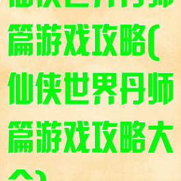 仙侠世界丹师篇游戏攻略(仙侠世界丹师篇游戏攻略大全)