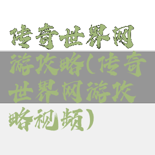 传奇世界网游攻略(传奇世界网游攻略视频)
