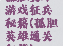 孤胆英雄游戏征兵秘籍(孤胆英雄通关秘籍)