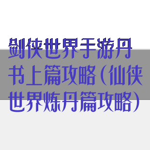 剑侠世界手游丹书上篇攻略(仙侠世界炼丹篇攻略)