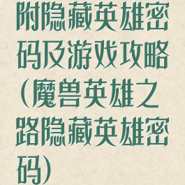 附隐藏英雄密码及游戏攻略(魔兽英雄之路隐藏英雄密码)