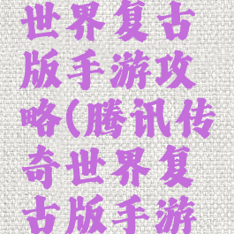 腾讯传奇世界复古版手游攻略(腾讯传奇世界复古版手游攻略大全)