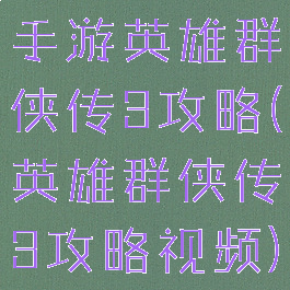 手游英雄群侠传3攻略(英雄群侠传3攻略视频)