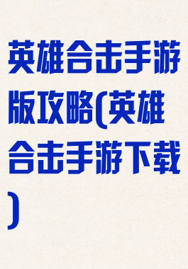 英雄合击手游版攻略(英雄合击手游下载)