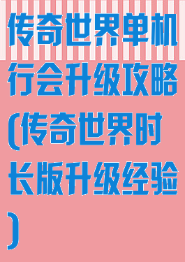 传奇世界单机行会升级攻略(传奇世界时长版升级经验)
