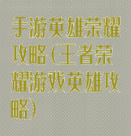 手游英雄荣耀攻略(王者荣耀游戏英雄攻略)