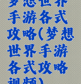 梦想世界手游各式攻略(梦想世界手游各式攻略视频)