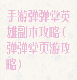 手游弹弹堂英雄副本攻略(弹弹堂页游攻略)
