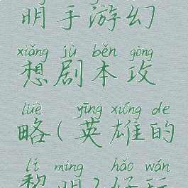 英雄的黎明手游幻想剧本攻略(英雄的黎明2好玩的剧本)