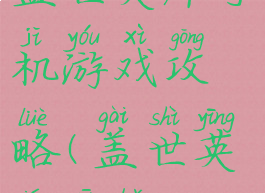 盖世英雄手机游戏攻略(盖世英雄新版)
