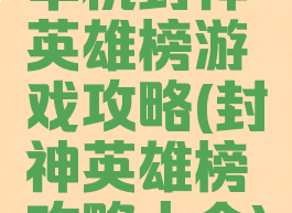 单机封神英雄榜游戏攻略(封神英雄榜攻略大全)